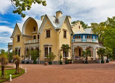 Следующая остановка — Ликанский дворец Романовых. И тут за 100 с лишним лет мало что изменилось, разве что елочки подросли. Это здание сохранилось почти в идеальном состоянии по одной простой причине: сюда приезжал отдыхать Сталин.