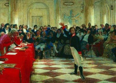 Первый крупный успех ждал Пушкина в 1815 году во время зимнего переводного экзамена — 15-летний лицеист прочитал свое стихотворение «Воспоминания в Царском Селе». На экзамене присутствовал Гавриил Державин, он был потрясен творением юного поэта. Пушкин позже писал: «Не помню, как я кончил свое чтение; не помню, куда убежал. Державин был в восхищении; он меня требовал, хотел меня обнять… Меня искали, но не нашли».