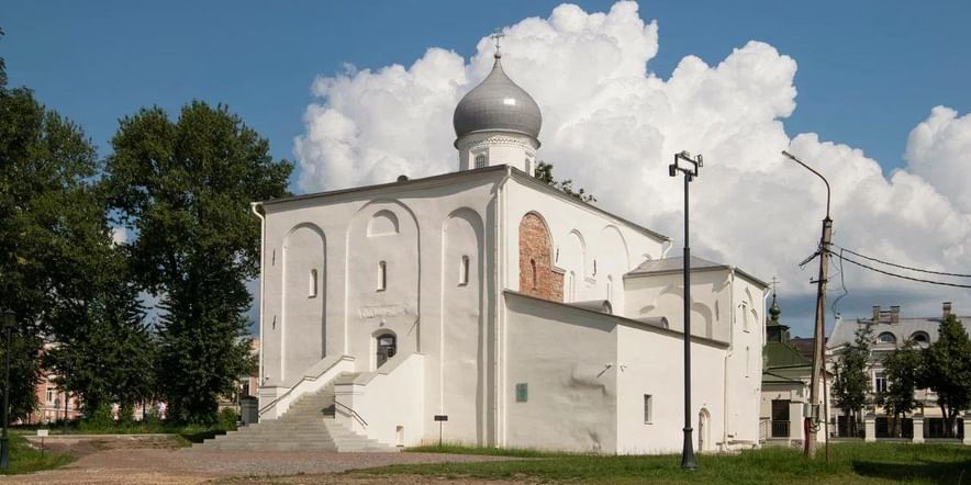 Церковь Успения Богородицы на Торгу — последняя по времени княжеская постройка в черте города — заложена новгородским князем Всеволодом совместно с архиепископом Нифонтом в 1135 году. Строительство храма завершилось в 1144 году. Построена на месте деревянной церкви 1133 года.