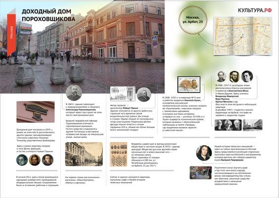 Дом, в котором рождались новые идеи, строились грандиозные планы, где спорили и творили, — скромный, трехэтажный, на углу Арбата и Староконюшенного переулка. Доходный дом Александра Пороховщикова — памятник культуры федерального значения. Здесь жили и работали талантливые, одаренные люди своего времени.
