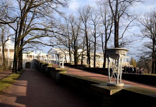 Термы Камерона включают Холодные бани, изящный павильон «Агатовые комнаты», висячий сад и прогулочную колоннаду — Камеронову галерею.