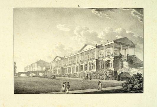 Личный архитектор императрицы Ч. Камерон был представителем «археологизирующего» классицизма, т. к. был известным знатоком архитектуры древнеримских терм. По заказу Екатерины II в 1780–1785 годах он воспроизвел в Царском Селе миниатюрное подобие римских построек.