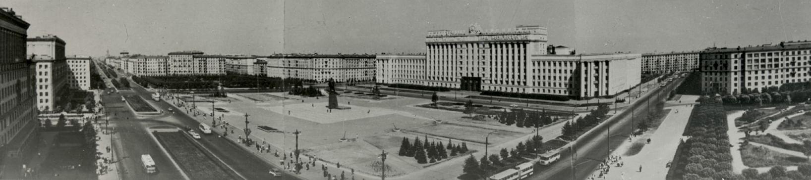 Согласно Генеральному плану развития Ленинграда в 1930-х гг. на юге города началось формирование второго общественного и административного центра. Его сердцем стала Московская площадь (получившая свое название в 1968 г.) и расположенное на ней здание Дома Советов, в котором должны были разместиться городские и областные органы партийной и советской власти. По сторонам площади планировалось поставить Дворец молодежи, Дом Красной Армии и Флота и театр, а перед главным фасадом Дома Советов — гранитные трибуны и памятник В.И. Ленину. Первоначально масштаб площади составлял 38-50 га, на ней должны были проводиться парады и демонстрации.