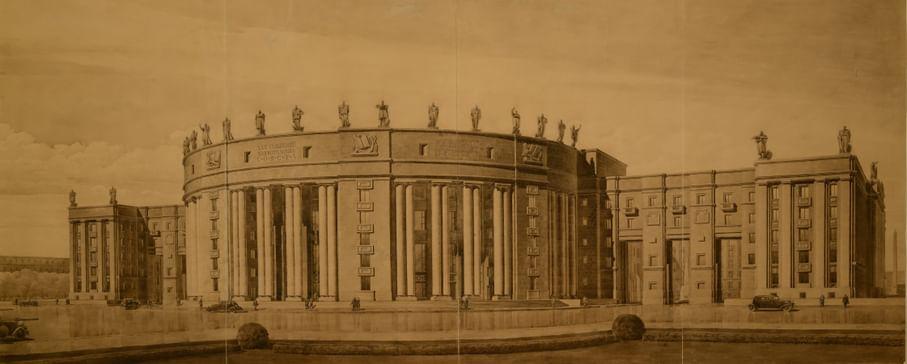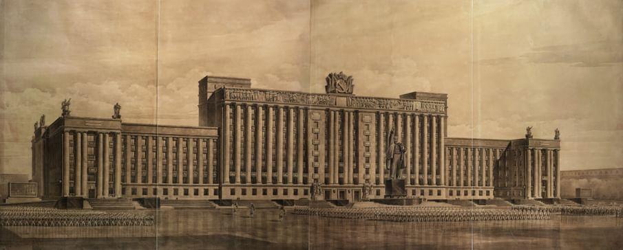В итоге на территории в 13 га было реализовано только здание Дома Советов. Его строительство осуществлялось с 1936 по 1941 годы мастерской под руководством архитектора Н.А. Троцкого, чей проект победил на закрытом конкурсе. В этом конкурсе наряду с Н.А. Троцким принимали участие такие ведущие архитекторы Ленинграда, как Л.В. Руднев, И.И. Фомин, Е.А. Левинсон, А.И. Гегелло, Г.А. Симонов, Л.А. Ильин.