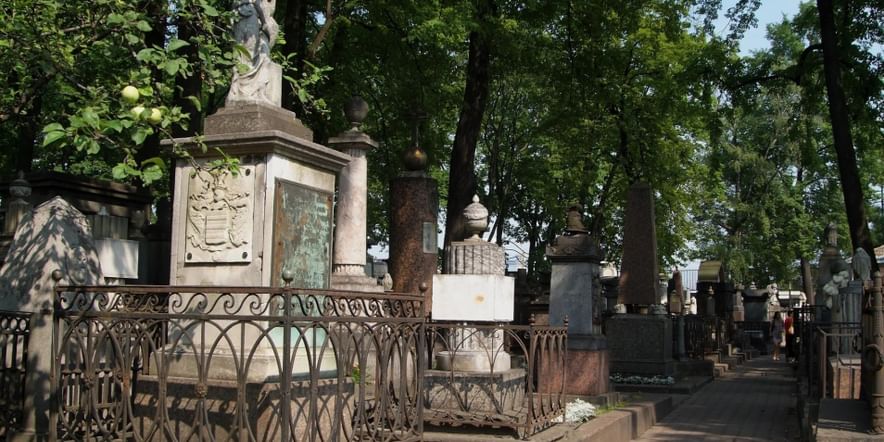 Здесь сохранилось более 1 000 надгробных памятников XVIII–XIX веков, которые являются уникальными произведениями мемориального искусства. В некрополе находятся надгробия современникам Петра I, деятелям отечественной истории, науки и культуры, представителям самых известных дворянских фамилий: М.В. Ломоносову, Д.И. Фонвизину, С.Ю. Витте, адмиралам В.Я. Чичагову, Н.С. Мордвинову, вдове А.С. Пушкина — Н.Н. Ланской, петербургским зодчим И.Е. Старову, А.Н. Воронихину, А.Д. Захарову, Ж. Тома де Томону, Д. Кваренги, К.И. Росси, А. Бетанкуру и многим другим знаменитым петербуржцам.