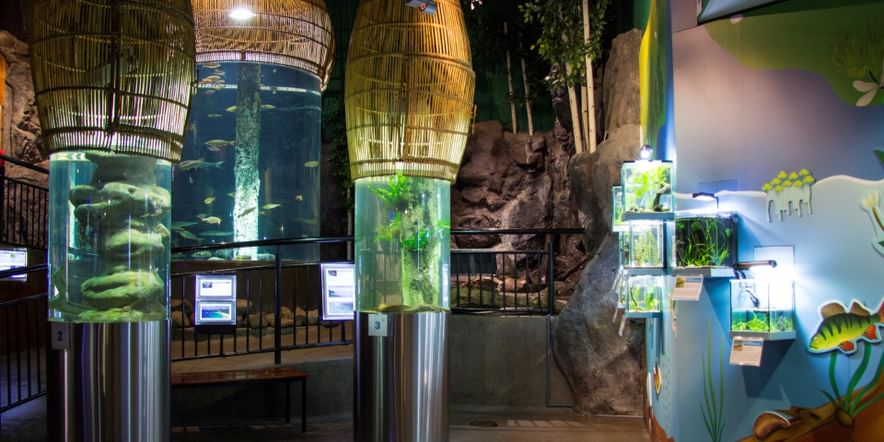 Санкт-Петербургский океанариум — единственный в городе. Он был открыт в 2006 году и до сих пор пользуется популярностью у горожан и гостей города. Живая коллекция содержит более 4 000 экземпляров рыб и водных беспозвоночных, амфибий, рептилий, млекопитающих, относящихся почти к 150 видам. На площади около 5 000 кв. м расположено 59 аквариумов общим объемом более 1,5 миллионов литров воды. Экспозиция океанариума разделена на тематические зоны. Проводятся показательные кормления.