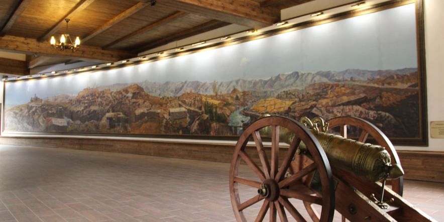 Центральное место в картинной галерее по праву принадлежит копии панорамы «Штурм аула Ахульго» работы Франца Алексеевича Рубо. Подлинник имел огромные размеры 120 м в длину и 12 м в высоту. Копия, выполненная группой художников под руководством Ахалова С. А. имеет размеры — 24 м в длину и 3 м в высоту.