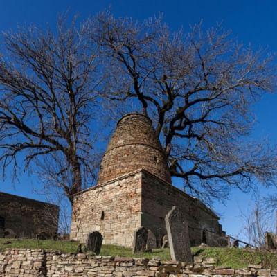 Чуть дальше — старинное кладбище, где захоронены как знатные, так и самые обычные жители. Оно знаменито нетипичными для мусульман надгробьями — каменными саркофагами IX-X веков, украшенными орнаментом и надписями. Исследователи сходятся во мнении, что саркофагами отмечались могилы особенно отличившихся при жизни людей.