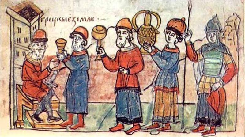 Купцы. Миниатюра из Лицевого свода. XVI век