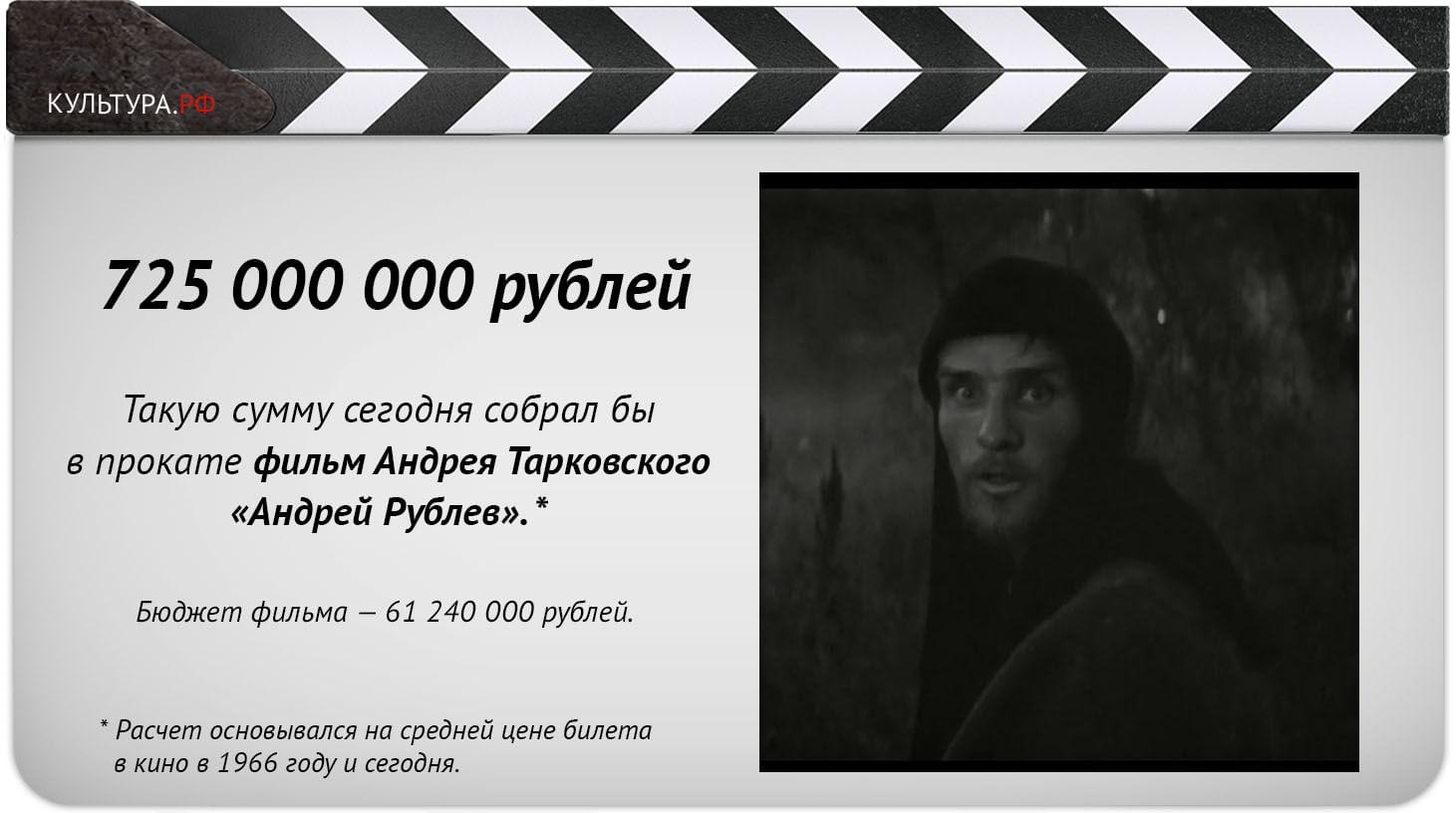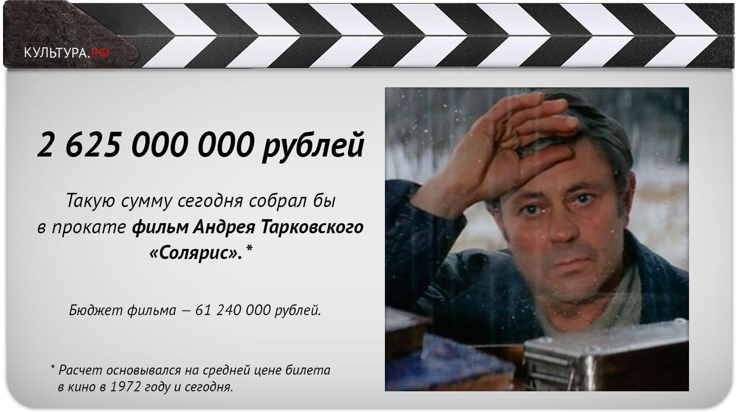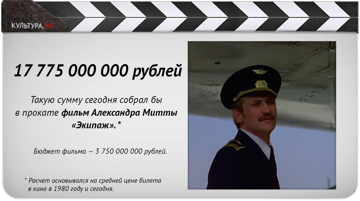 Какие советские фильмы можно считать блокбастерами и сколько эти картины могли заработать, если бы вышли в прокат сегодня? Мы выяснили бюджеты популярных отечественных кинолент и стоимость билетов на них, а затем перевели эти суммы в современные деньги. Узнайте, сколько составили бы кассовые сборы киноэпопеи «Война и мир», мелодрамы «Москва слезам не верит» и первого отечественного фильма-катастрофы «Экипаж».