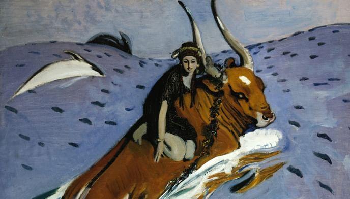 К примеру, выставочная премьера. Театральная работа — к постановке оперы «Юдифь», автор которой отец художника, композитор Александр Серов, занавес для балета «Шахерезада» «Русских сезонов» Сергея Дягилева. «Выезд на охоту» написан в 1910 году в период большого интереса к сказочной тематике и древнему миру. Это увлечение — следствие путешествия в Грецию, которое вдохновило Серова и на создание истинного шедевра — «Похищение Европы».