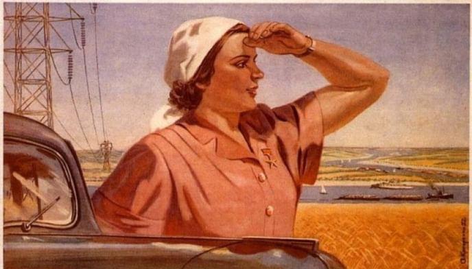 «Серп и молот»… в качестве принта на тканях Ивановской мануфактуры. Ситец, сатин и креп, покрытые шестеренками, силуэтами фабрик, лампочками и колосьями. Тканевая пропаганда — прямой путь к массовому потребителю. Понимание текущего момента сделало Иваново третьей пролетарской столицей. К пятой годовщине Октябрьской революции выпускают платки под девизом «Вся власть Советам!». С ситцевой трибуны звучат самые актуальные лозунги того времени — «Пятилетку в четыре года!».