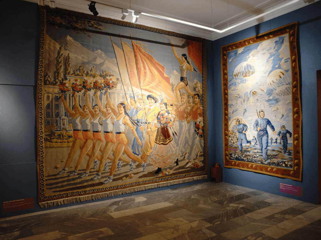 До 13 октября во Всероссийском музее декоративного искусства проходит выставка «Ковер историй. Сюжеты советского коврового искусства». В семи залах музея представлены ключевые темы и мотивы советского ковроткачества, связанные с построением нового мировоззрения об общем счастье.