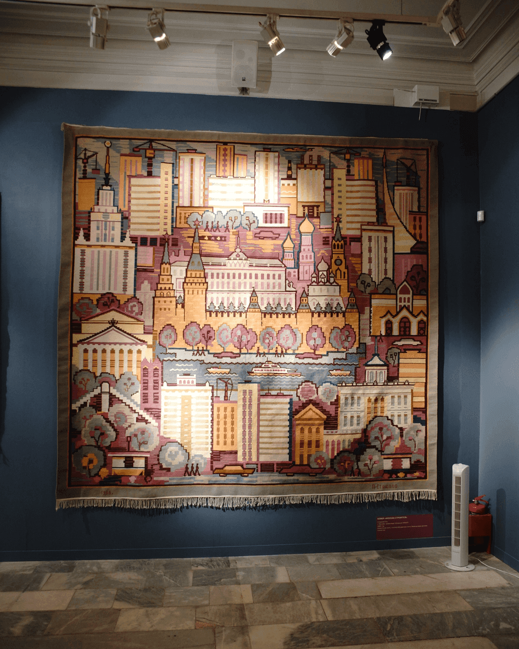 Особое место в экспозиции занимает ковер «Москва строится», который был создан в 1967 году художником Павлом Сташковым, ведущим специалистом мастерской ковроткачества Института художественной промышленности. Этот ковер рассказывает о Москве эпохи большого строительства 1960-х годов. Это единый орнаментальный знак, собирающий вместе Кремль, Большой театр с белой геометрией новостроек, с «поясами» водного и автомобильного движения, с метро, памятником Гагарину и строительными кранами.